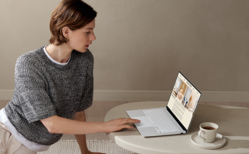 灵耀14 Air A面采用创新高科技陶瓷铝材质,触感温润,具有独一无二的天然纹理,并赋予机身更耐磨、抗指纹特性,让自然之美历久弥新。雪域白/山岚灰两款配色,搭配灵耀经典几何线条设计,清雅素净、简约优雅,尽显高级质感。整机轻约1.15kg、薄至1.1cm,在同尺寸轻薄本中表现出众,不仅单手可托持,亦可随身放入背包,日常携带无负担。