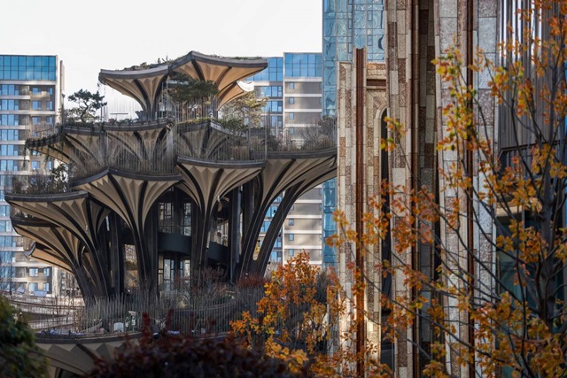 生命之树作为西安万象城的标志性建筑,不仅承载深厚的丝路文化记忆,更成为情感连接的桥梁。人们从四面而来,观赏古树新生,感受枝叶荫蔽,更可逐级攀登,流连于57米高,由60个叶片构筑的丝路花园中,感知植物的四时变化,将节气的变化与情感的交接纳入人生体验中。