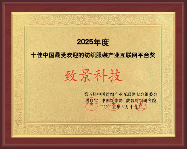 致景科技荣获2025年度“十佳中国最受欢迎的纺织服装工业互联网平台”