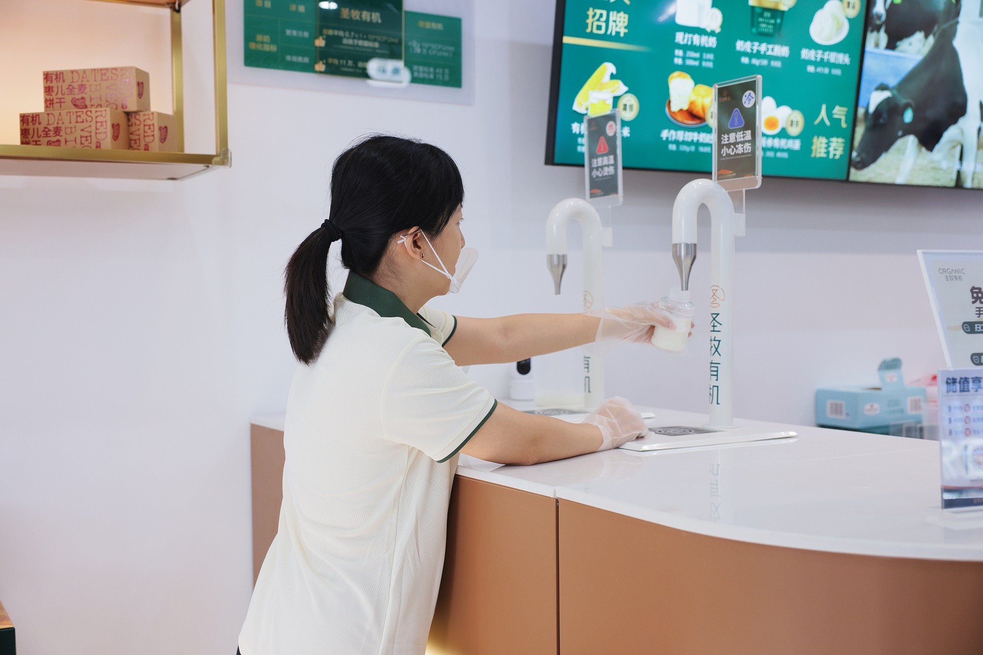 店里通过图文展板、简明的数据图、短片演示等方式,把原本抽象的“有机标准”“检测项目”拆成普通人听得懂的语言:为什么有机奶的价格会略高,蛋白质和钙指标代表了什么,不同检测项目在意的是哪些风险点。