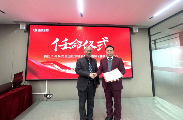 签约仪式后,仪式现场同步举行任命仪式, 正式委任王朝弘出任水链生活执行董事长兼CEO ,新任水链生活执行董事长兼 CEO 王朝弘率先发表致辞。他高度认可水链生活在行业内积累的深厚资源、成熟运营体系及务实合作诚意,强调此次战略融合是水链生活基于数字经济发展趋势作出的精准战略抉择,并非简单的业务叠加。