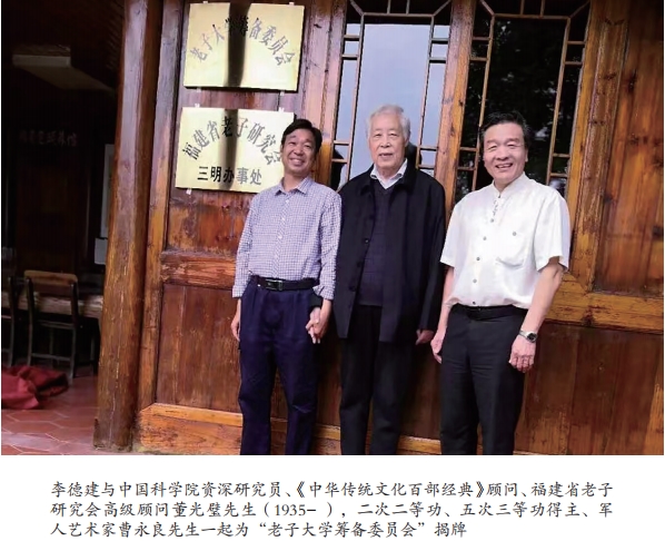 在繁忙的行政事务中,李德建因缘际会,与二十世纪最卓著的老子文化学者相遇。之前的大学求学时期和中共长乐县委宣传部的工作经历,赋予他敏锐的文化嗅觉与理论根基,而《道德经》中“道法自然”“玄同一切”“以正治国”“无为而治”的宏大智慧,如一道光,照进了他的精神世界。他于1980年9月高考本科录取于南昌陆军学院合成陆军指挥专业,后又于南京海军指挥学院、中共福建省委党校等多所院校进修,系统的军政训练与理论培养,塑造了他坚韧的品格与宏阔的视野。